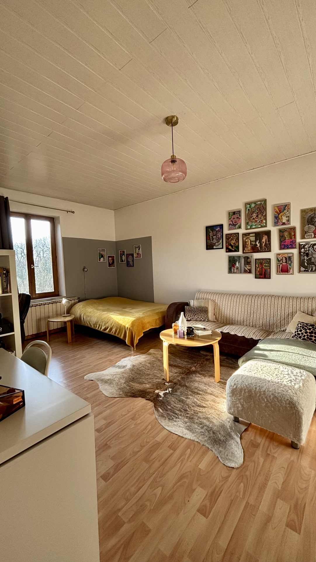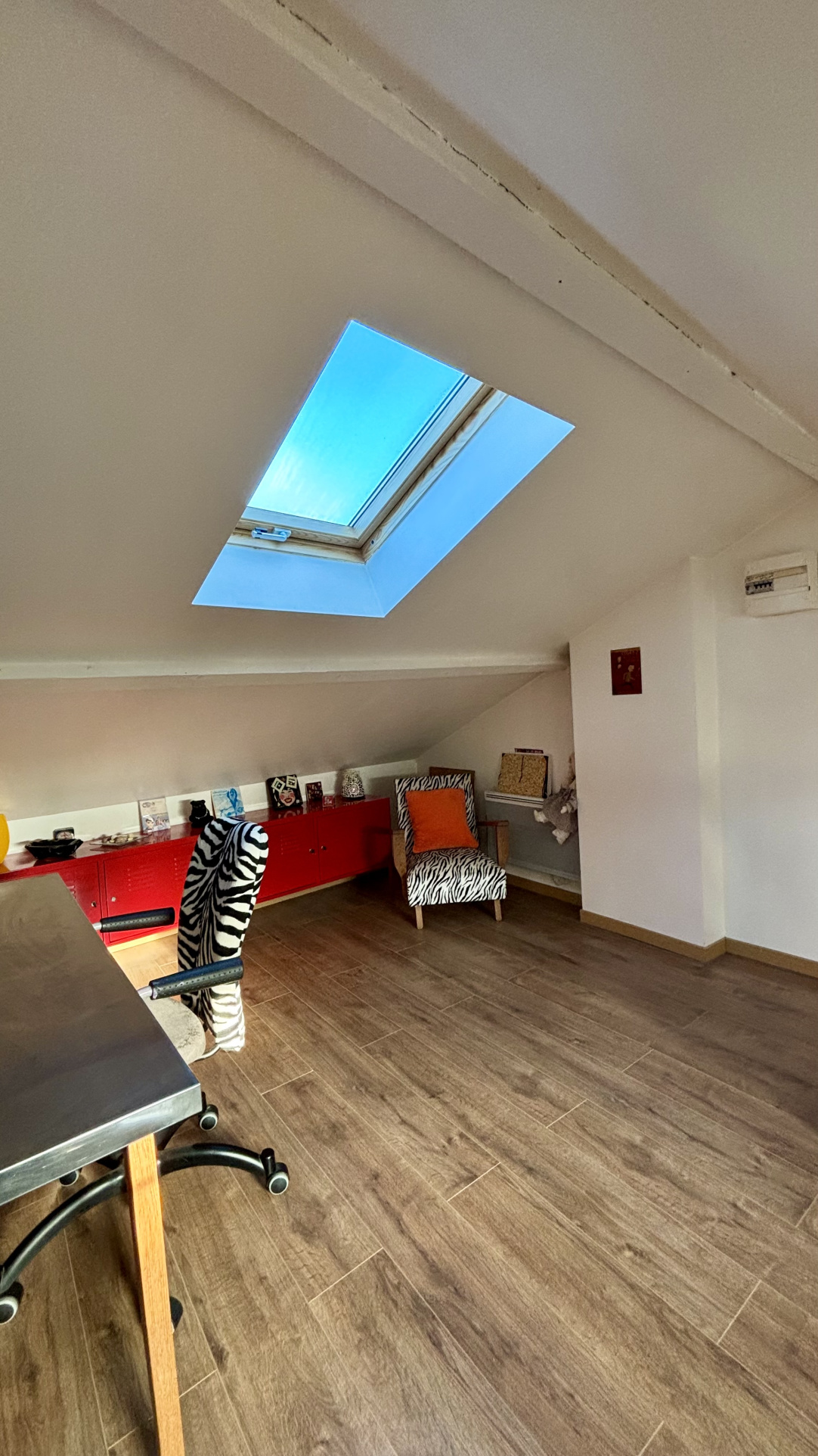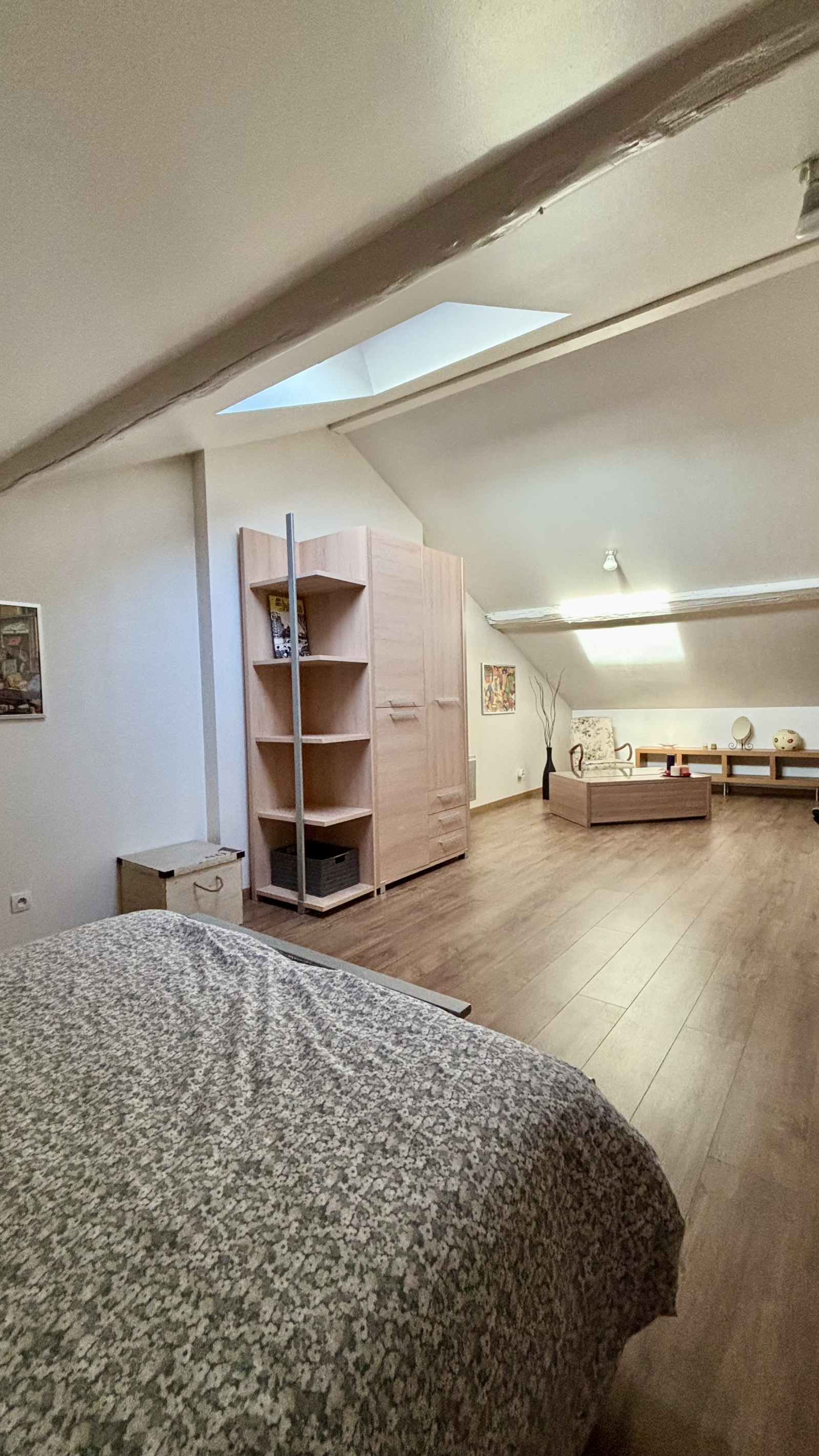 2ème étage : une mezzanine confortable et une grande chambre.